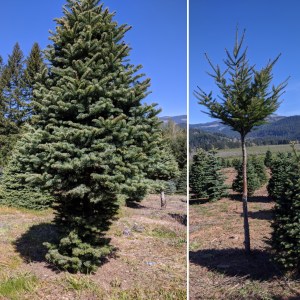 Last but surely not least we have my personal favorite out of the odd balls. Here we see two trees with very different looks that started off very similarly. Two different types of trees that reacted in totally opposite ways to having their lower branches cleared off to promote air flow between the trees and help create the handle which our guys will hold when cutting and moving the trees.