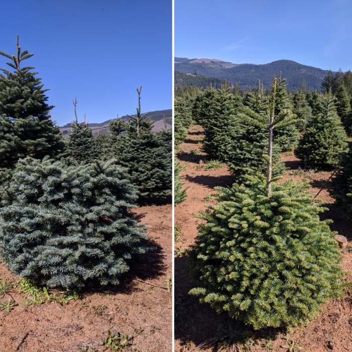 In this image here we have the opposite problem. The left tree has been growing for a few years and a leader has yet to emerge. Causing it to look more like a strange shrub rather then the classic Christmas tree we are all looking for. The right tree has finally started to sprout a leader. It is hard to imagine now but with time and care the rest of this tree will fill in and start to take on the conical shape we are all used to seeing. Sometimes even Christmas trees need a little extra time and patience to grow up just right.