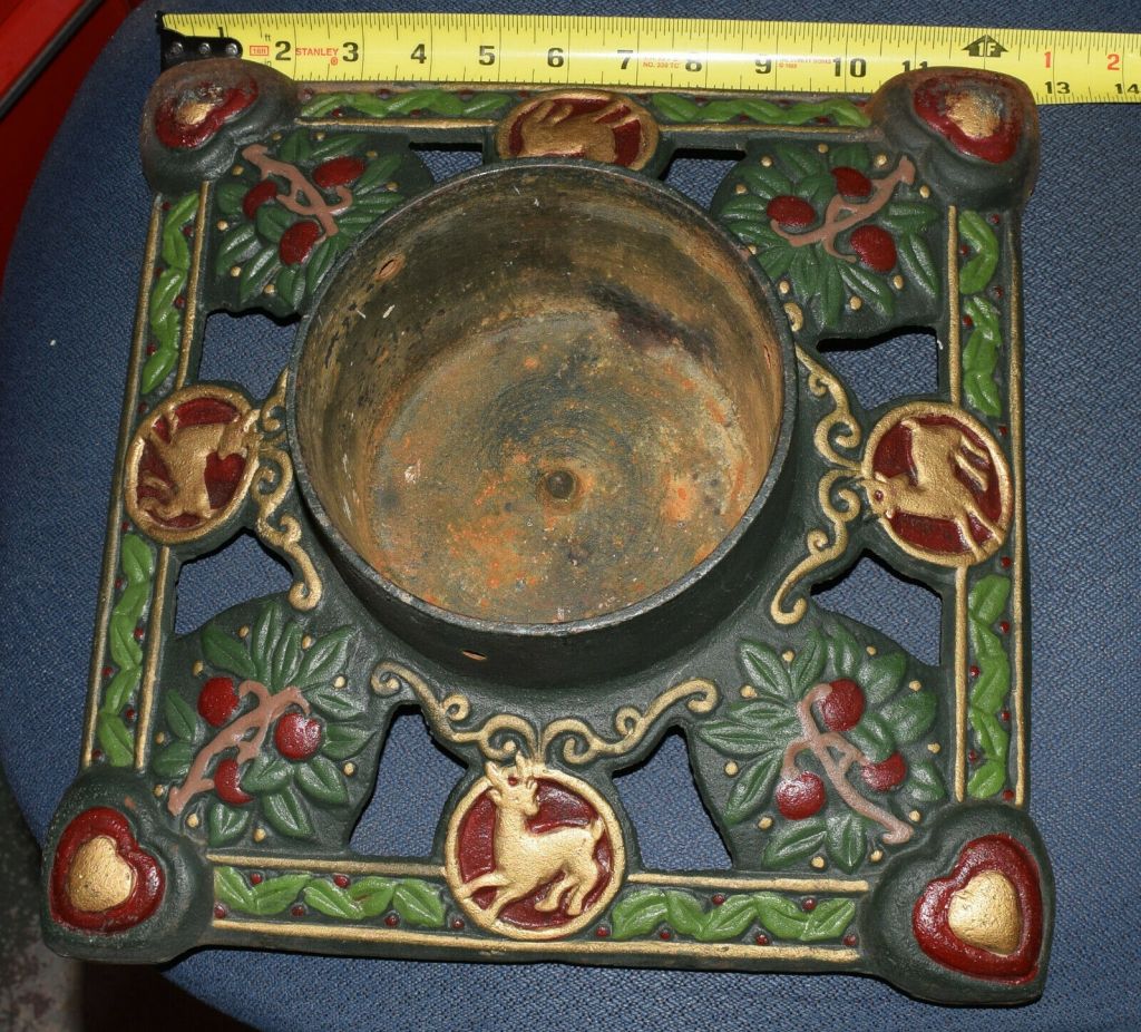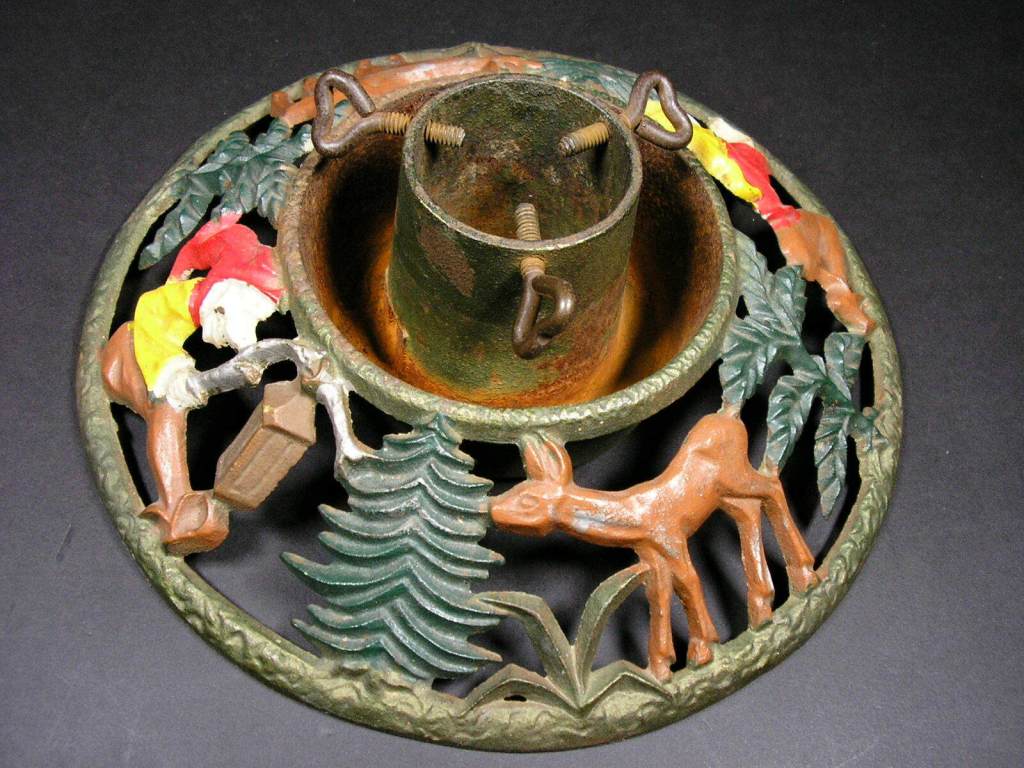 Let’s start with a bit of history on Christmas Tree stands shall we? Based off information I found, some of the first US patents for a Christmas Tree stand were by Hermann Albrecht of Philadelphia, Pennsylvania. As you can see, the stand that he was building looks quite different than the modern day stands we are used to. Though stands to hold Christmas trees had been around prior to this, in some form or another the main features remain the same. A sturdy base, heavy enough to help the tree not fall over, a reservoir to hold water and historically, a collar of some sort to hold the tree upright. In the late 1800’s cast iron stands, typically with images of Santa Claus or reindeer as you can see below. By far the most complex I found was this amazing stand that plays interchangeable calliope discs.